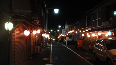 夜8時。お盆の迎え火だろう、小さな国道の両側に佇む、昔ながらの小さな商店街に灯された灯籠。今がお盆なのだということが実感される。道に人気はないが、なぜかこの灯籠の暖かげな光のために、全然寂しい感じがしない。先祖の霊がどんどんこの迎え火に引き寄せられているから、ということではあるまいが。人工的な街灯の光とは全く異なる、灯籠の明かり。なぜかその中にいると不思議と安閑とした気持ちになる。暖かい光の列。僕は車を止め、外に出てしばらくその光の中に佇んだ。誰もいないけど孤独感がない。灯籠の薬効。