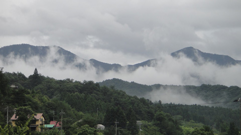 再び車に乗り込む。494号を黒森峠まで登り切り、下りに転じる。面河ダムでは霧が山肌を這い上がって、真夏なのに冷涼な風景をさらけ出している。
