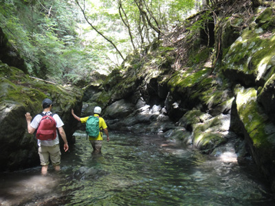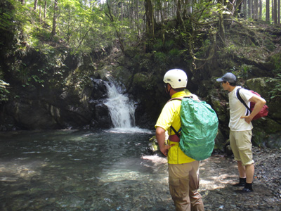 30分くらい登り一途の坂を上り続ける。バスを降りたときには結構涼しいと思っていたが、上り坂を登るにつれ、汗が噴き出してくる。やはり斜面を登るという動作は、結構きついのだ。日差しも強くなってきた。この分なら今日の水線遡行も爽快にいけそうだ。