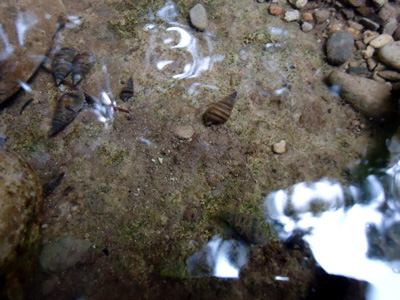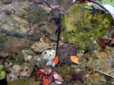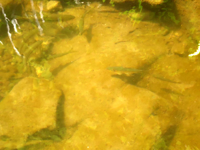 そして今日は魚が結構見られる。どれもこれも小さい魚だが、恐ろしく動きが速い。房総で見慣れているハヤとはスピードが段違いだ。小さくて黒っぽい魚。あまりに速くて魚体の模様は見えないが、ヤマメか岩魚だろうか?