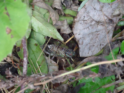 この森でも地面からセミが飛び上がったり、地面に落ちたりしている。地上での短い生活を終えようとしているセミたちの、最後の生の奔出である。川原でも石の間に死に際のセミが飛び込んで、その動きを止めようとしていた。とにかくこの時期は天寿を全うしたセミが、地面で最後の叫び声を上げる。生のサイクル。
