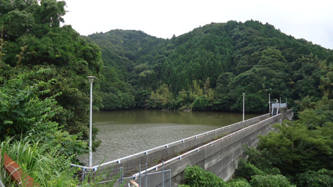 狭い林道を上がってゆく。道路には緑の栗がたくさん落ちている。道は途中未舗装となるが、車1台分の道幅はあり、脱輪等の危険は感じない。対向車が来たら結構きついが、全く来ない。すぐに増間ダムが現れる。ダムとしては小さめの規模だ。人気はない。