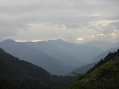 鳩ノ巣駅までは遠かった。延々と山の中の下り道を下りる。一度開けた林道的な場所と合流したが、引き続き山の中に突入して、細い山道を行く。最後の方は道がガレていて、石だらけの道は歩きにくく、膝が笑い始める。汗だくで、足はかゆい。日は暮れかかり、森の中はかなり暗くなってきた。