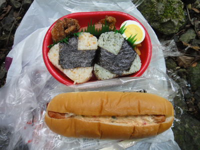 千葉駅構内のコンビニで、今日の昼飯、おにぎりセットとチョリソードックを買う。今日は奥多摩駅でバス発車までにあまり時間がないため、リスクを避けてここで買っておくことにしたのだ。
