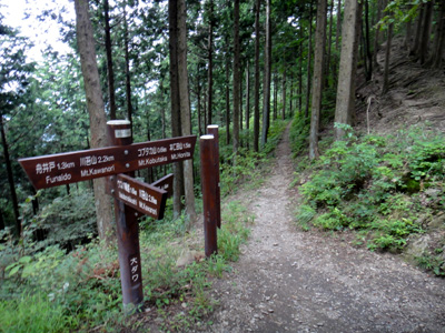 17時、ようやく大ダワで、まともな登山道と合流した。ここからはしっかりした道だ。(ここで今まで歩いてきたウスバ林道が通行禁止となっていることを知る)ここから鳩ノ巣駅までは4.4kmとある。1時間はかかるか。