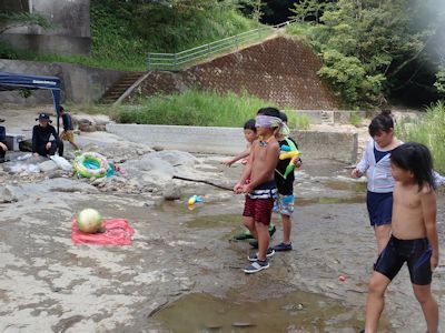 日没前、堤防の河口側に中学生か高校生か、若者グループが来て泳ぎ始めた。