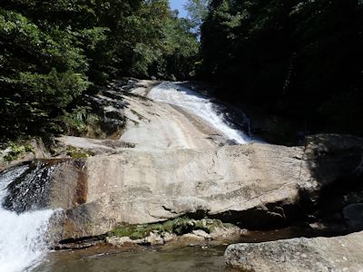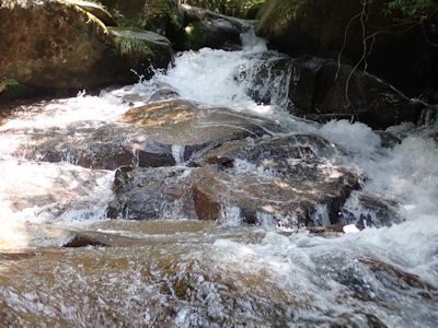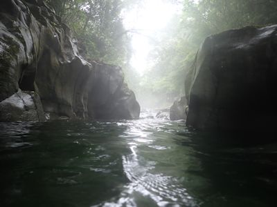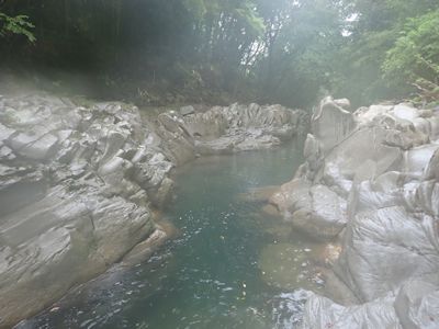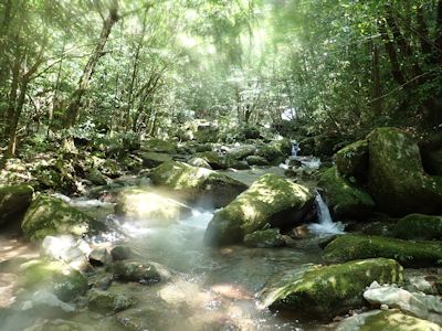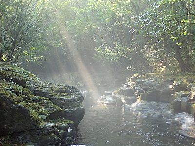 沢に差し込む光の筋(宮崎県串間市赤池渓谷) |
