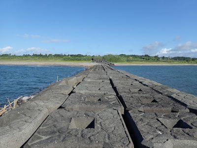 安楽川河口ではサメのためかキスが釣れないので、少し西、大崎町にある菱田川の河口でキスを狙うことにする。