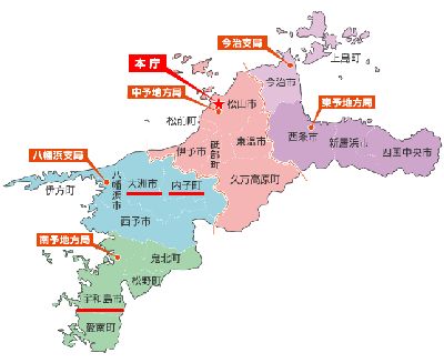 今回訪れた愛媛県宇和島市、大洲市、内子町の地図 |