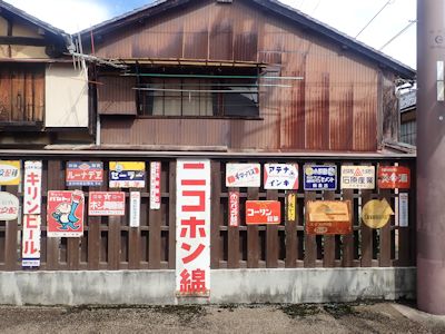 ポコペン横丁。昭和レトロの看板が所狭しとかかっている