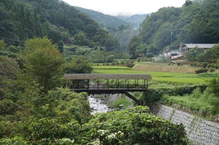 屋根付きの田丸橋。田園に溶け込む (愛媛県内子町) |