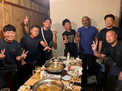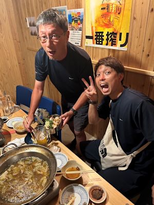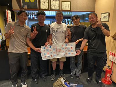 大分のメンバーと送別会。「毎日が地獄です」と書かれた