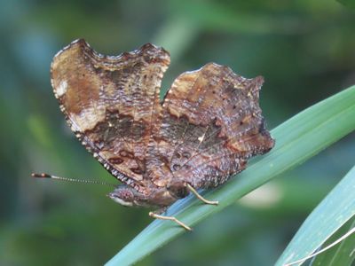 ルリタテハの翅裏。表とは打って変わって枯れ葉模様