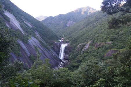 山奥にかかる滝としては恐ろしく巨大 (鹿児島県屋久島)
