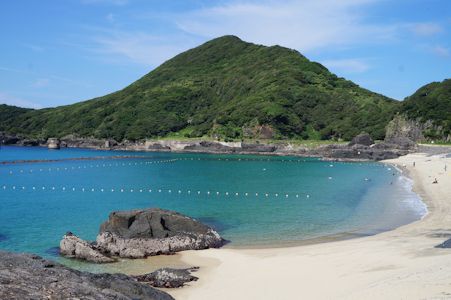 白砂の海水浴場。海が透き通っている (鹿児島県屋久島)