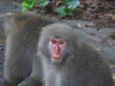 千尋の滝を見たあと、サルが森から顔を出す (鹿児島県屋久島)
