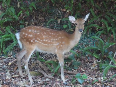 シカはビビっているが、それでも逃げない (鹿児島県屋久島)