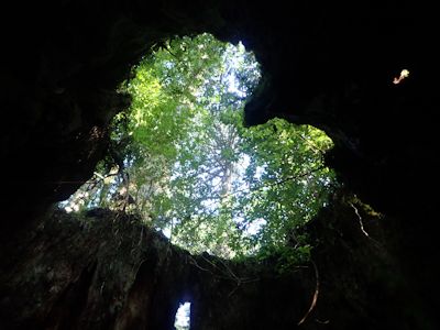 ウィルソン株の中から見上げた空。ハート型 (鹿児島県屋久島)