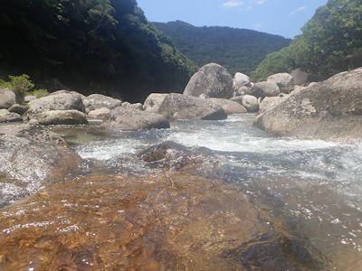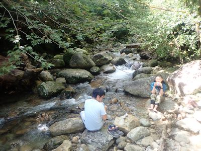 小楊子川の上中流域で沢遊び。しかし、このあと緊急事態発生