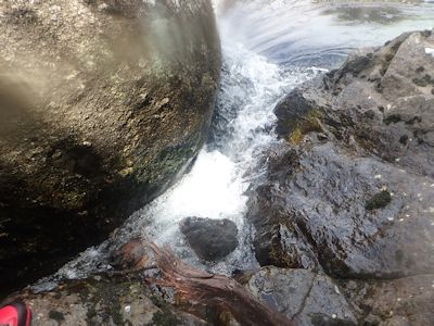 淵で水中に引きずり込まれて死にかけたあと、この岩と岸の狭い