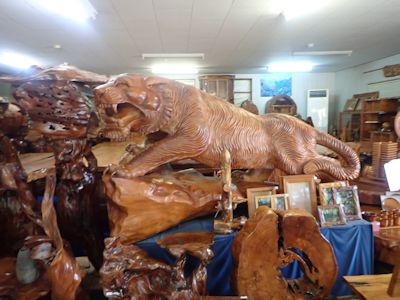 屋久杉土産店。このような虎とかテーブルとかの大仰な