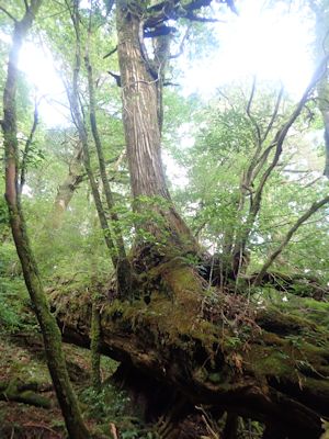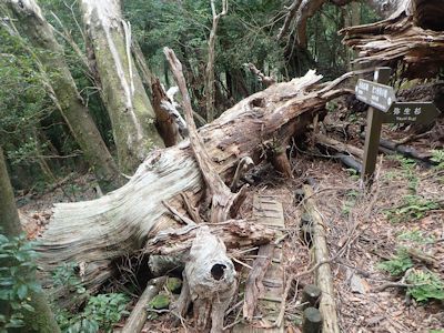 白雲雲水峡の弥生杉。台風で倒れた (鹿児島県屋久島)