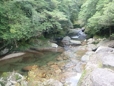 白雲雲水峡の遊歩道は、初め沢沿いに行く (鹿児島県屋久島)