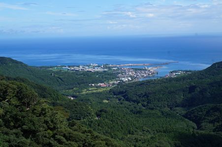 白雲雲水峡に登っていく道から、宮之浦港(多分)を見下ろす。