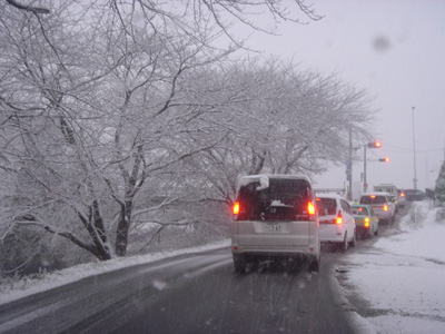 今日は、年末に出かけるシリアのビザを取りに、会社を休んで東京へ向かった。朝6時に起きると、一面の雪景色。しかも雪は降りしきっている。郡山で今冬初の大雪である。今週、この冬最大の寒気が大陸から日本列島に南下、いままで暖冬模様だった気温が一気に低下したのだ。