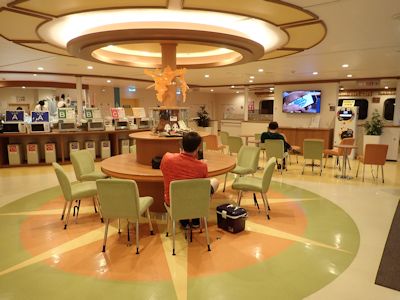 清潔な感じの新しい船だ。広々としたラウンジがあり、イスもたくさんある。客室は個室、2人部屋、3人部屋、ペット部屋、大部屋など様々な種類がある。