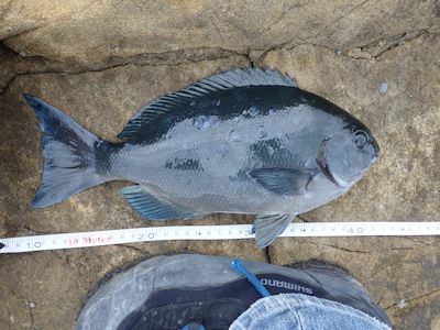 磯際ベタベタで食った。アイゴ37cm。やっぱりアイゴは大きいが、40cm以上は出ない。