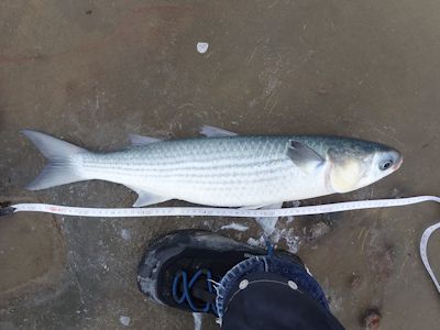 この日は3匹のボラを釣った。いずれも50cmオーバーで、58cm、57cm、52cm。
