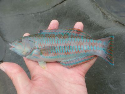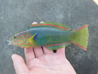 その中で、カラフルなベラが1匹釣れた。これは、「リュウグウベラ」だろうか?