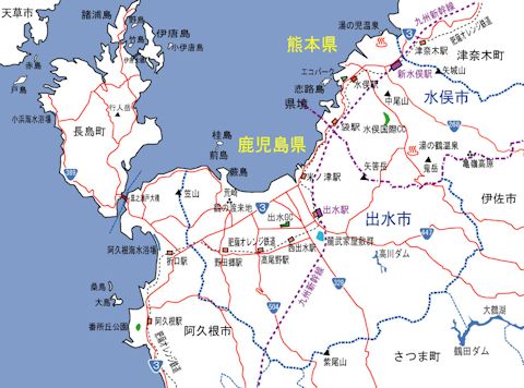 ここから都城経由で串間に帰る。17:30、水俣を出発。