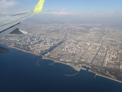 千葉県を東から西に横切った飛行機は、高度を下げながら、千葉市上空辺りを飛行する。