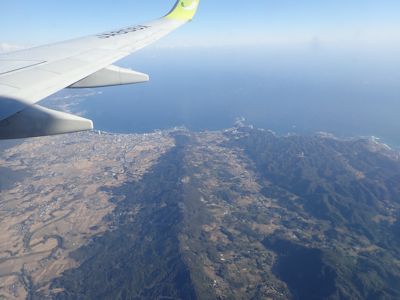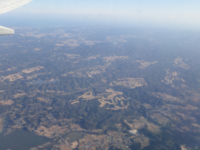 その後、飛行機は千葉県内陸に入り、房総半島の山々の、尾根と谷が細かく錯綜する山容を見下ろすようになる。