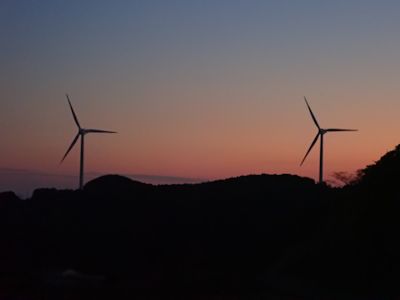 そしてしばらく北上すると、長狭平野の南側の山中に、1本だけ風車が立っている。