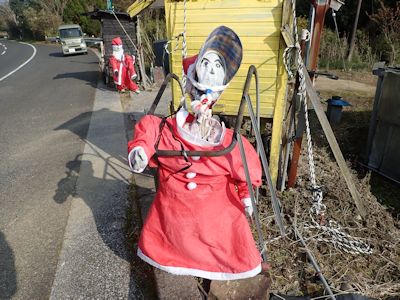 近くにはキャンプファイヤー並の火を焚いて、地元の人や消防団の人たちが集まっている。