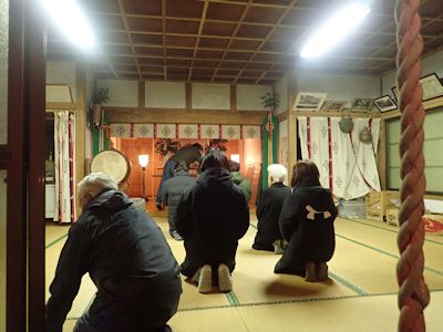 訪れる。本殿の畳の間に上がり、参拝する。(千葉市若葉区多部田町) |