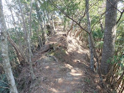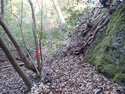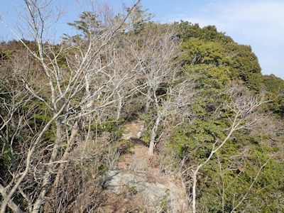 間違った尾根に入り込んでしまっても、尾根道の場合、わりと踏まれた感じがある。だから迷うわけである。房総の山々では、このような枝尾根が次々に出てくるので、いつのまにか間違った道にはまり込んでいることも多い。