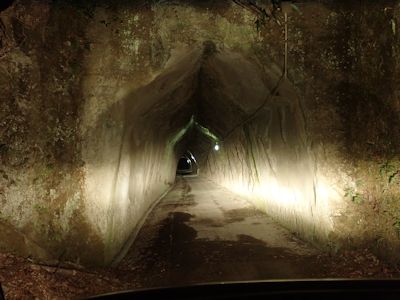 トンネルをくぐる。このトンネルには歩道がなく、トンネル自体が幅狭なので、車が通るたびに恐ろしい。できるだけトンネル端を歩く、途中で足をひねってしまう。大声を上げる。だが捻挫まではいかなかったようだ。痛みで足を引きずるも、しばらくすると痛みは引き普通に歩けるようになる。