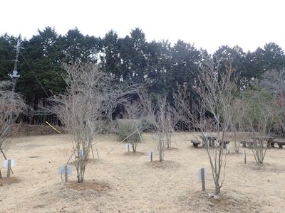 福島県三春町から寄贈された「三春の滝桜」が植えられているが、まったく育っていない。本当にまだ生きているのかどうかさえ分からないくらいの、高さ50cmほどの細枝である。