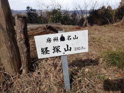 房総の山の山頂には、行政が設置したのだろう、「房州低名山」という標識が建っているのだが、ここ経塚山の標識は「低名山」の「低」の字が黒く塗りつぶされている。房州人の意地だろう。他県の人間に「千葉県には山がない」と言われることに対する反発だ。気骨のある人間もいるものだ。「低名山」というネーミングは悪くないが、なにかしら自分を卑下している卑屈さが感じられるので、堂々と「名山」と名乗ればいいではないか、という気持ちだろう。私は同感だ。標高の高い山ばかりが名山ではない。