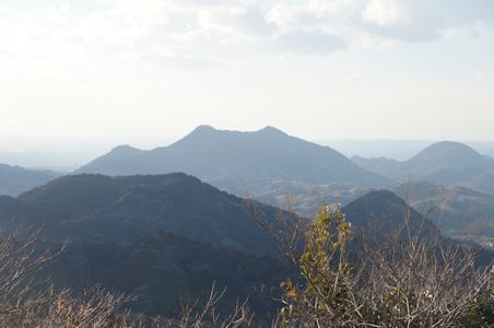 御殿山山頂からの展望。中央の双峰は富山 |