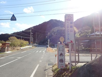御殿山ハイキングコース入口にたどり着いたのは、午後2時半。すでに歩き始めてから4時間近く経っている。
