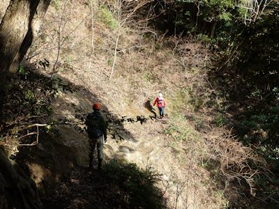 眼下に沢を見下ろす。道がなくなっているように見えたが、