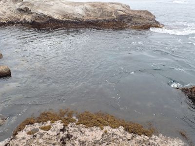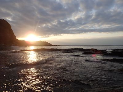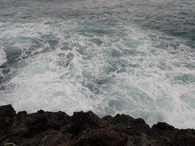 実入の磯、2日目。朝の満潮時、磯は水に浸っている