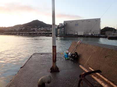 その頃、アジ釣りのおじさん2人組がやってきた。私とは反対側の内港側に遠投ウキを投げてカゴ釣り。だがやっぱり釣れない。