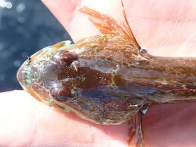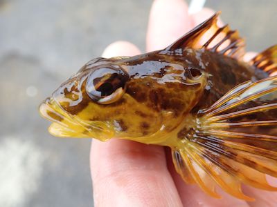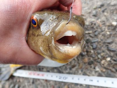 その後1時間再び何も釣れなかったが、左手のテトラに近いところでアナハゼが釣れる。そこは水深が浅いため、結果的に底スレスレを釣っていたことになったのだろう。