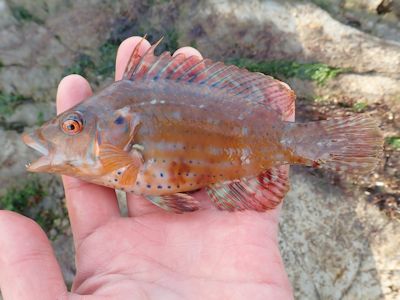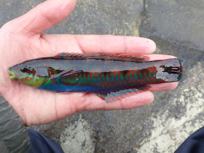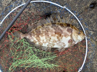 前日は釣れなかったニシキベラが釣れる(実入の磯) |